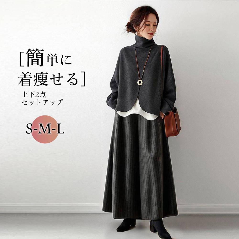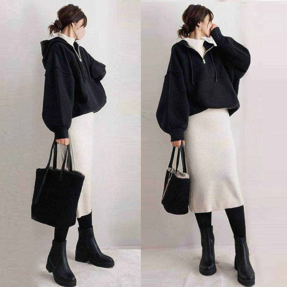 2点セット チェック柄 フード付き 長袖 ファスナー トップス パーカー+スカート カジュアルセット